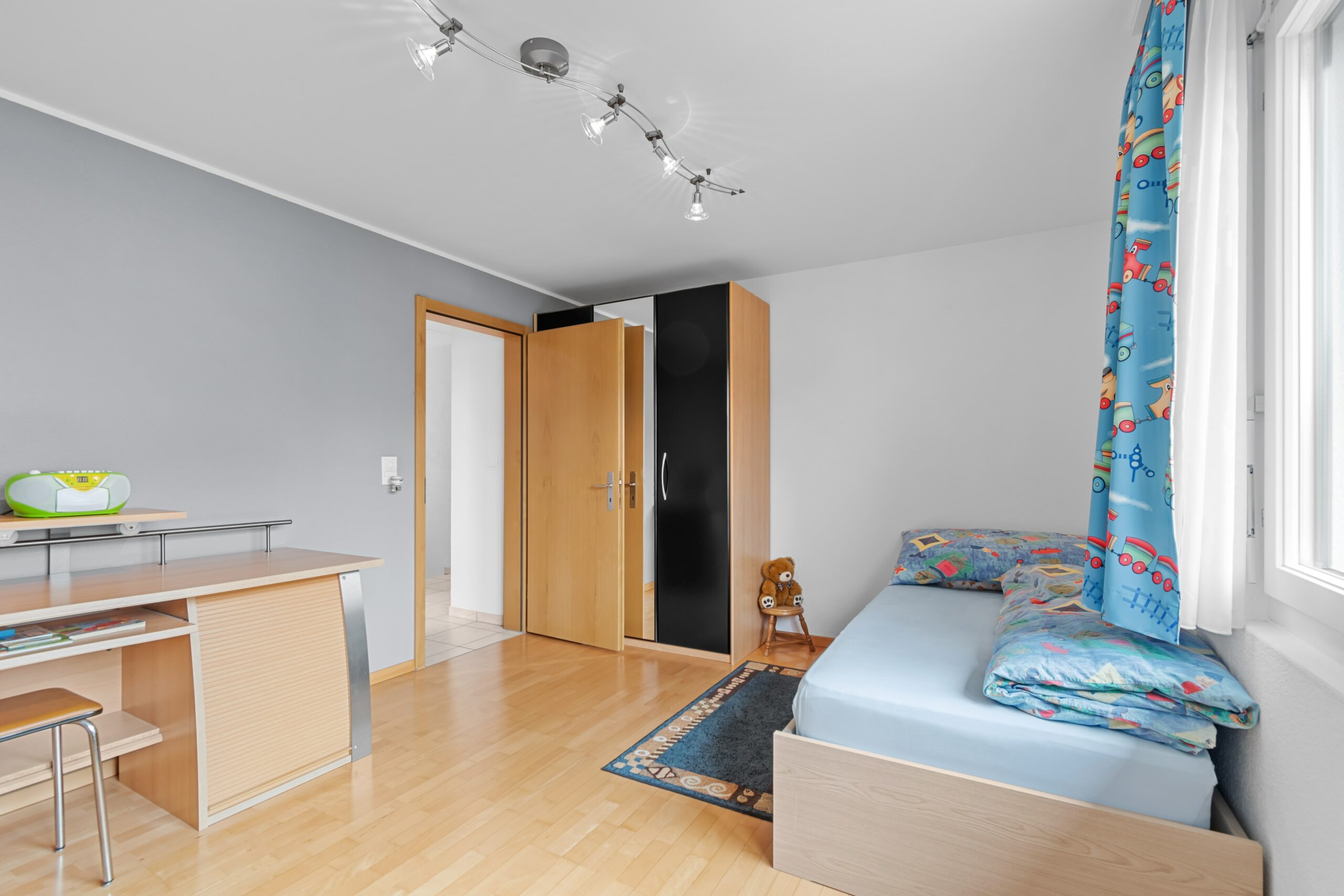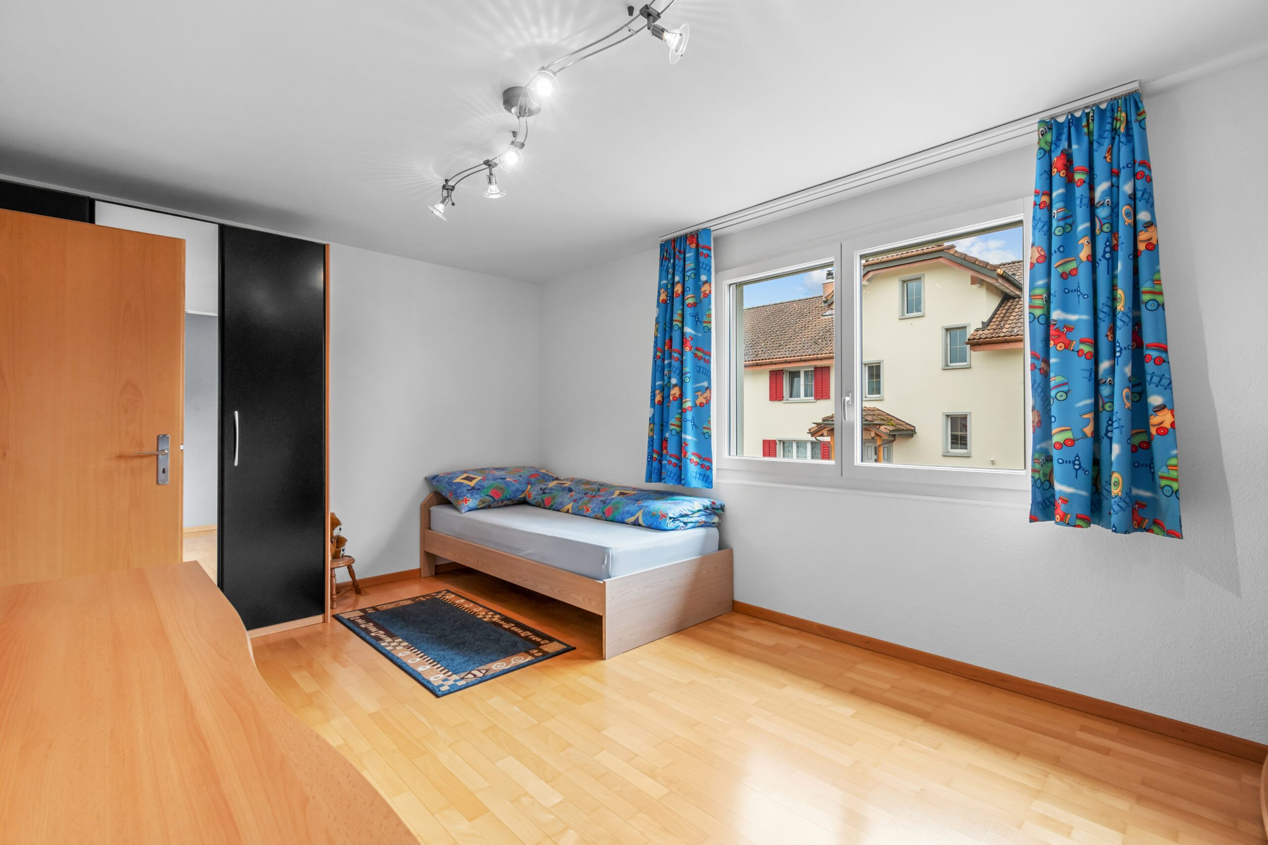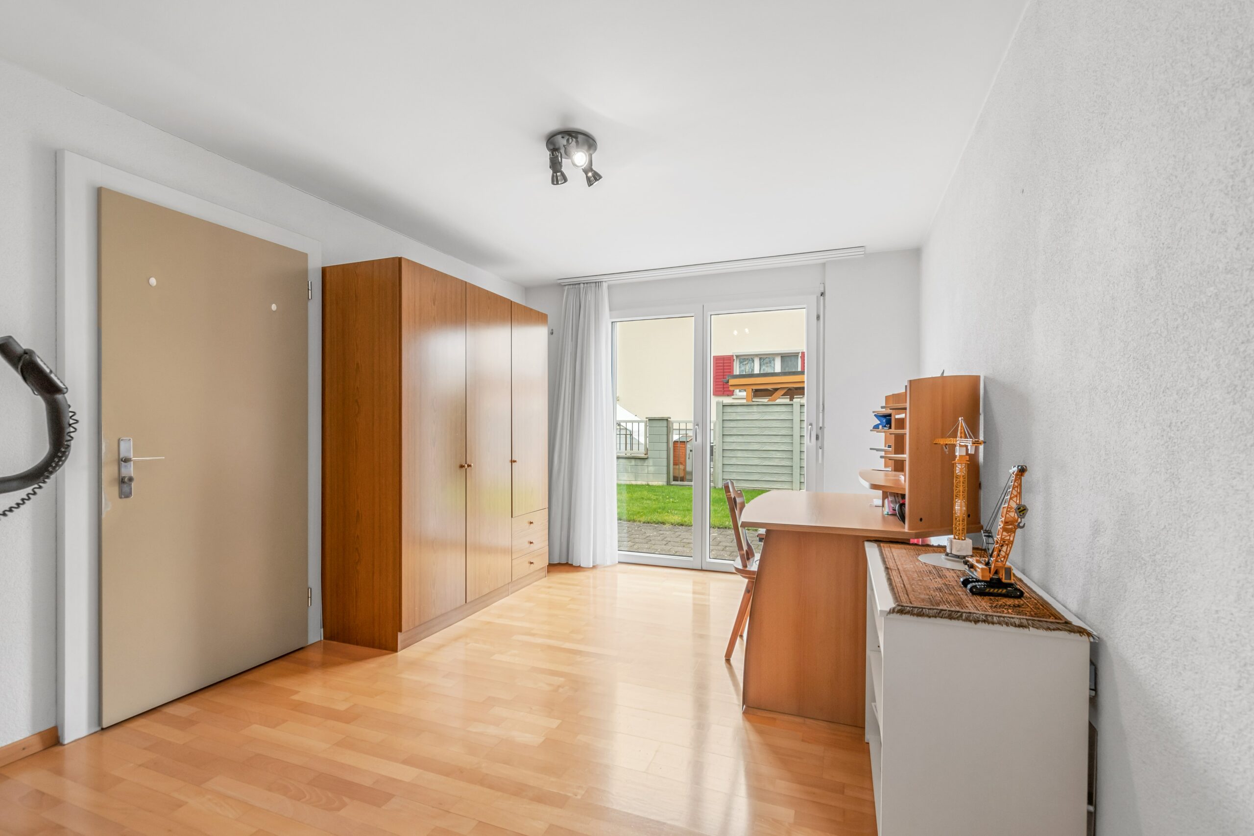 Im Erdgeschoss befindet sich ein gemütliches Wohnzimmer, eine moderne Küche mit Essbereich sowie ein Gäste-WC. Im Obergeschoss erwarten Sie drei Schlafzimmer und ein Badezimmer. Das Dachgeschoss bietet zusätzlich Platz für ein weiteres Schlafzimmer oder ein Büro.