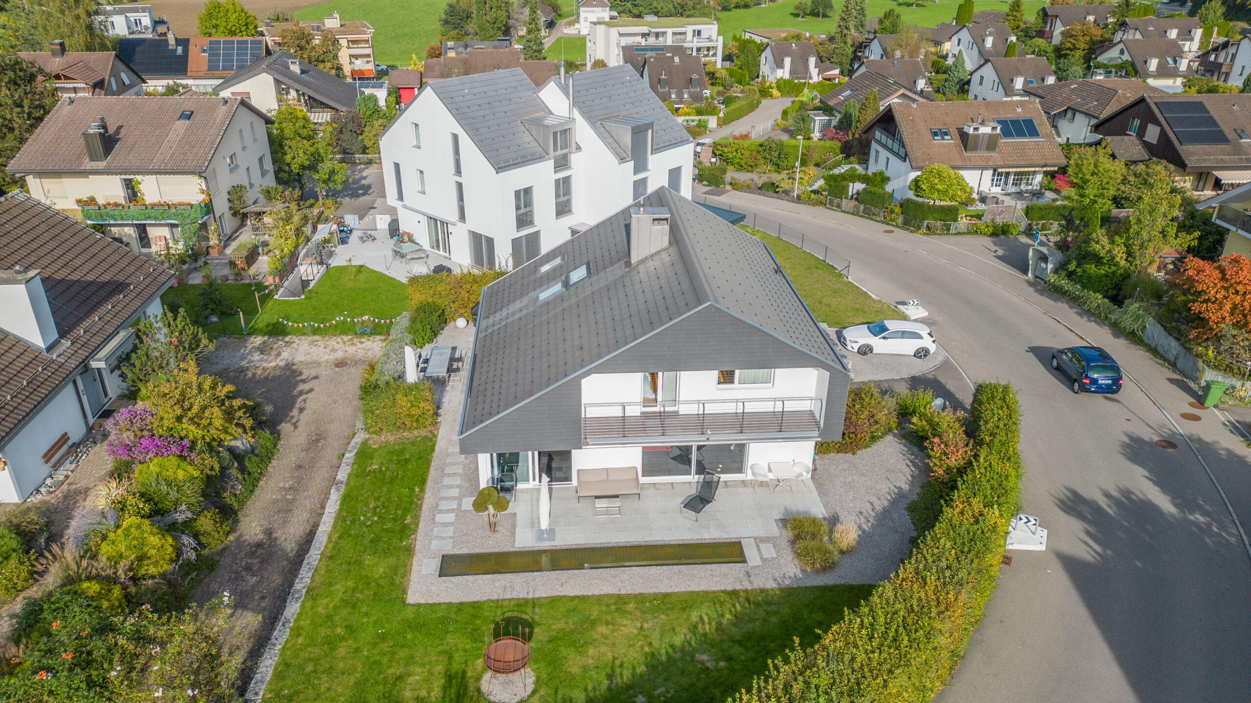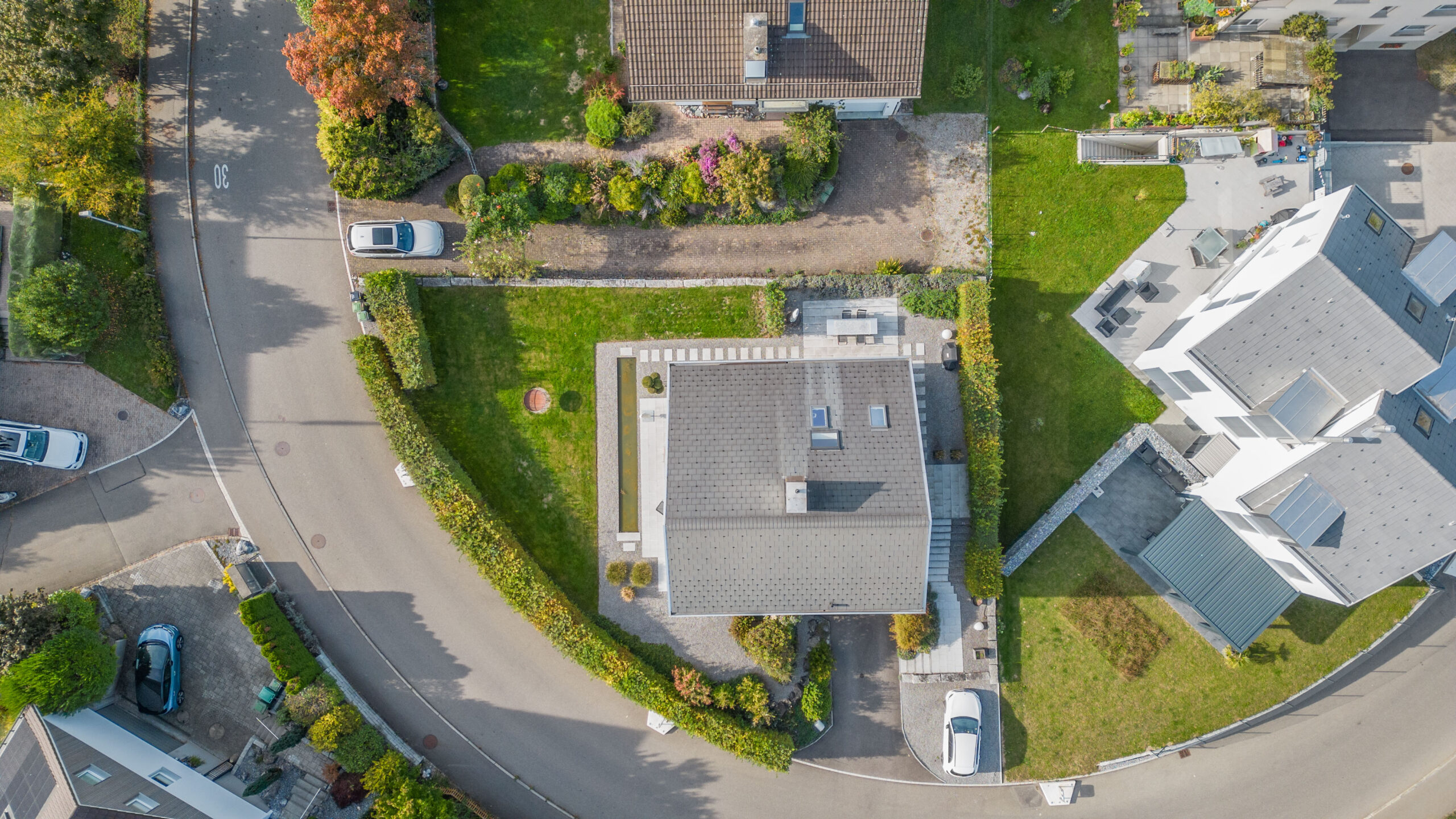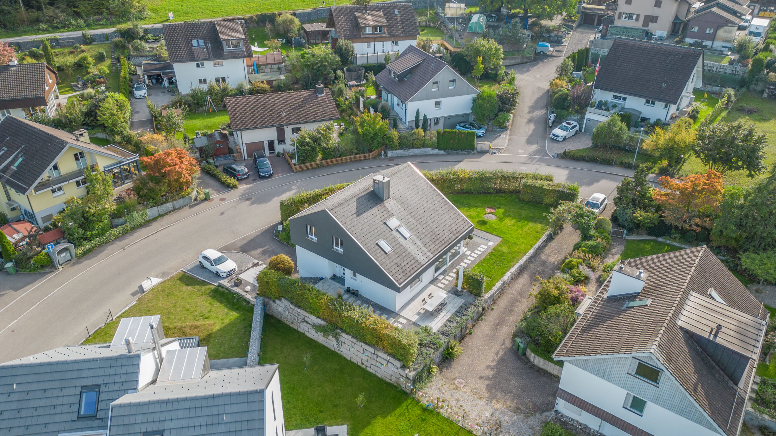 Die Immobilie befindet sich an einer wenig befahrenen Quartierstrasse, in einem gepflegten Einfamilienhausquartier, an ruhiger Lage.